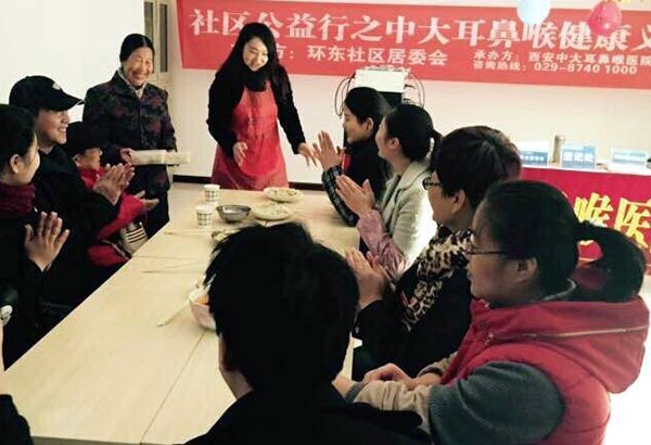 12月17日,受碑林区长乐坊街道办邀请,西安新城中大耳鼻喉医院代表来到了环东社区进行义诊,并参与了环东社区居委会专为残疾人举办的冬至包饺子活动。现场气氛热闹而温馨。