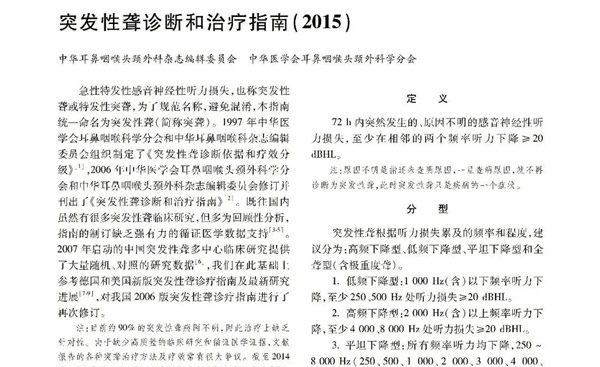 《突发性聋诊断和治疗指南》根据听力损失累计的频率和程度,突聋分为高频下降型、低频下降型、平坦下降型、全聋。